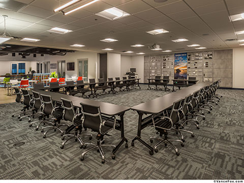 Elemental LED embraces their entrepreneurial, spirited, and passionate culture by encouraging their people to think big, speak up and get the impossible done. The workplace matters for innovation, and designing a variety of bright and useful spaces within one large space has allowed their organization to be flooded with creative and competitive individuals.