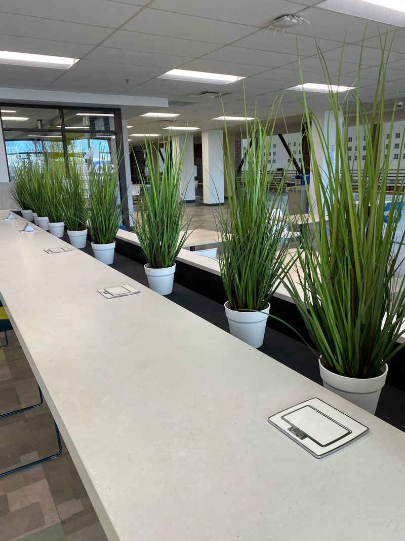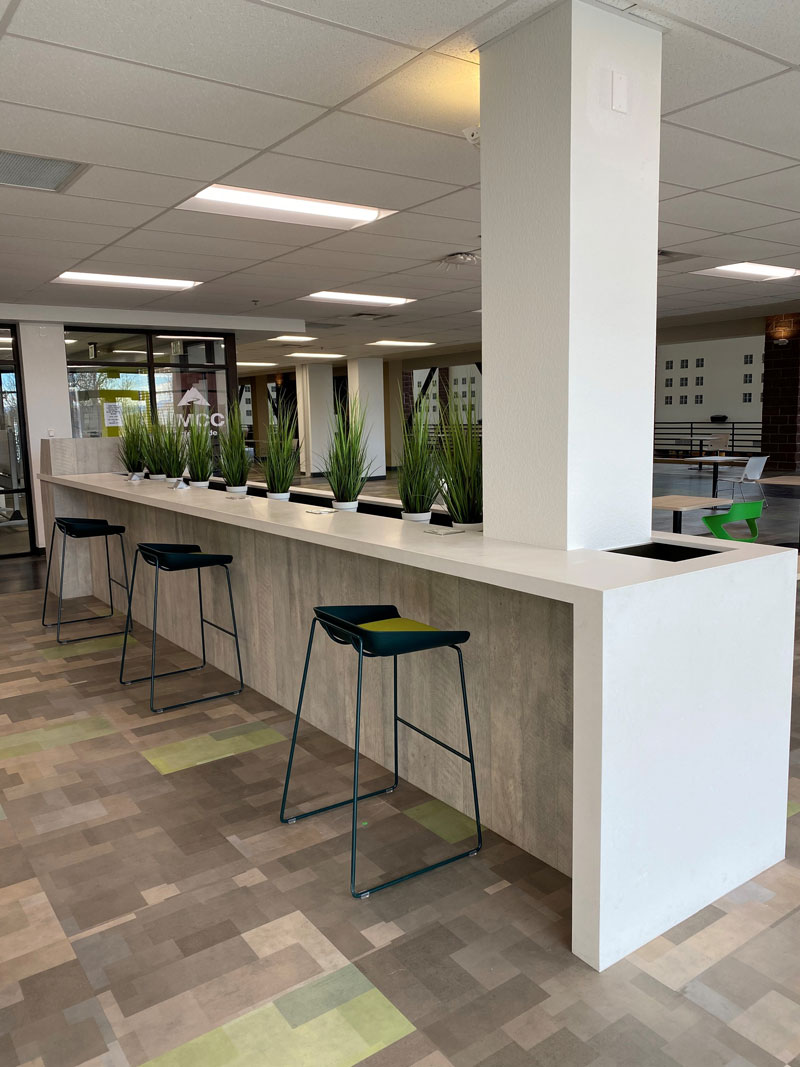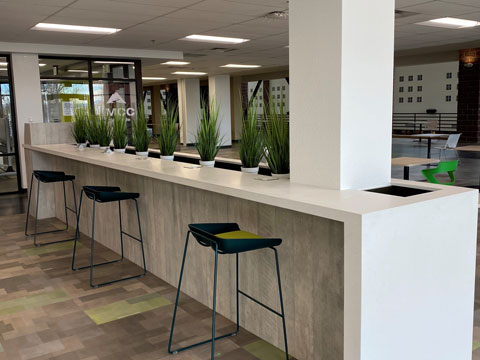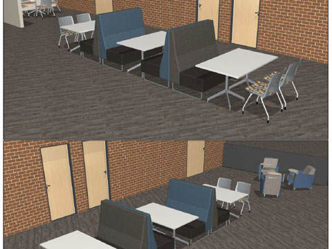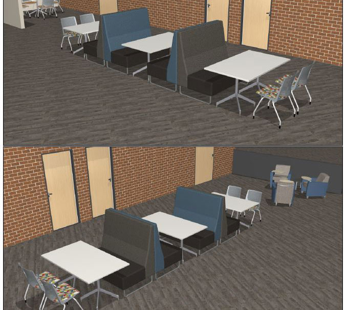 Incorporating the use of lounge with function is great for students to complete work, be on their electronic devices, or simply sit back and converse with their peers. This open space that fosters collaboration, or quiet contemplation, required us to specify scalable furniture for the environment.